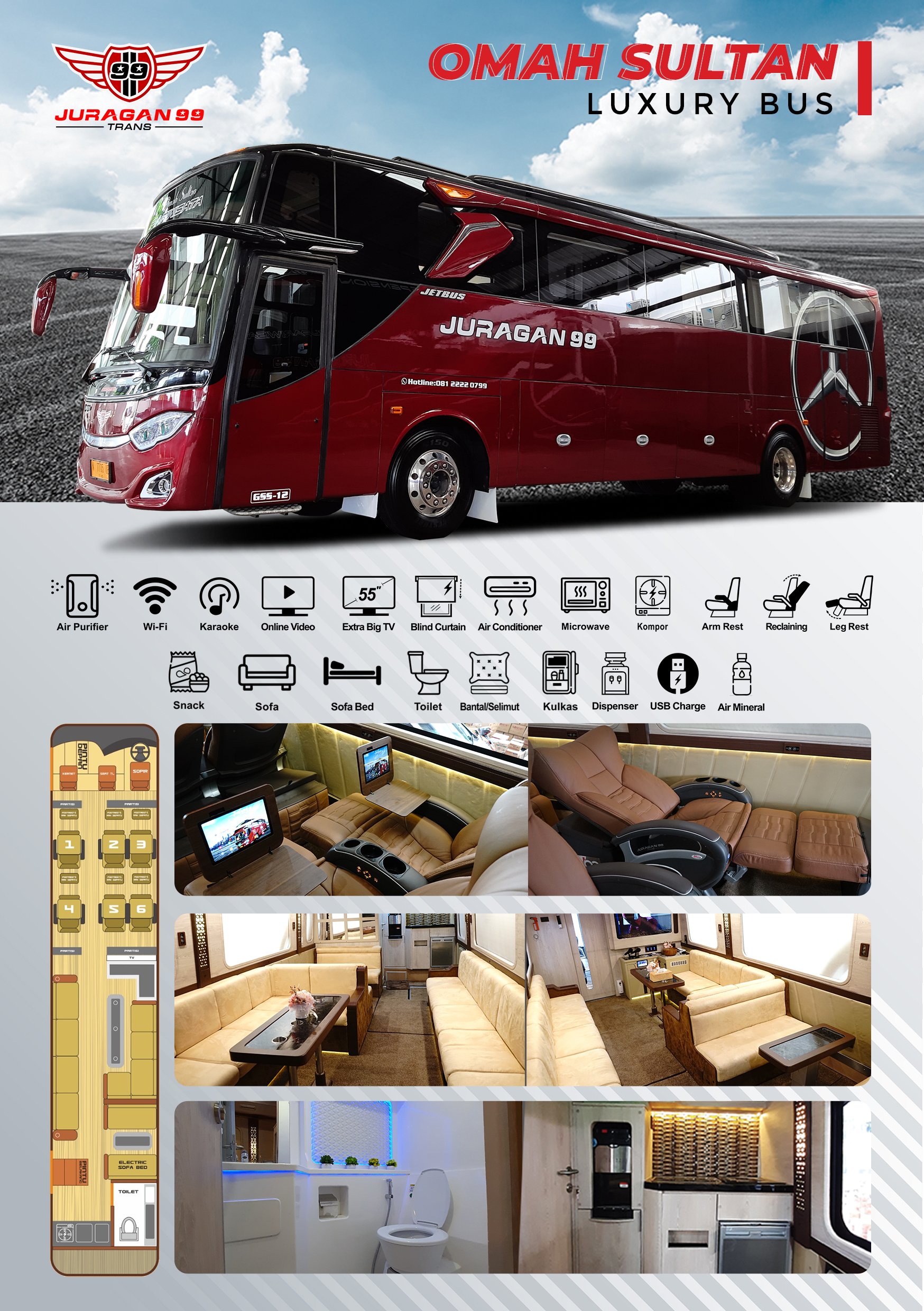 Bus Pariwisata yang melayani perjalanan dari Kota Malang ke mana saja dan bisa disewa untuk kebutuhan perjalanan Premium dan Pengalaman Istimewa. Omah sultan menawarkan interior elegan dengan fasilitas Eksklusif yang terbagi menjadi 3 Kabin Mewah untuk menampung 6-15 orang penumpang.