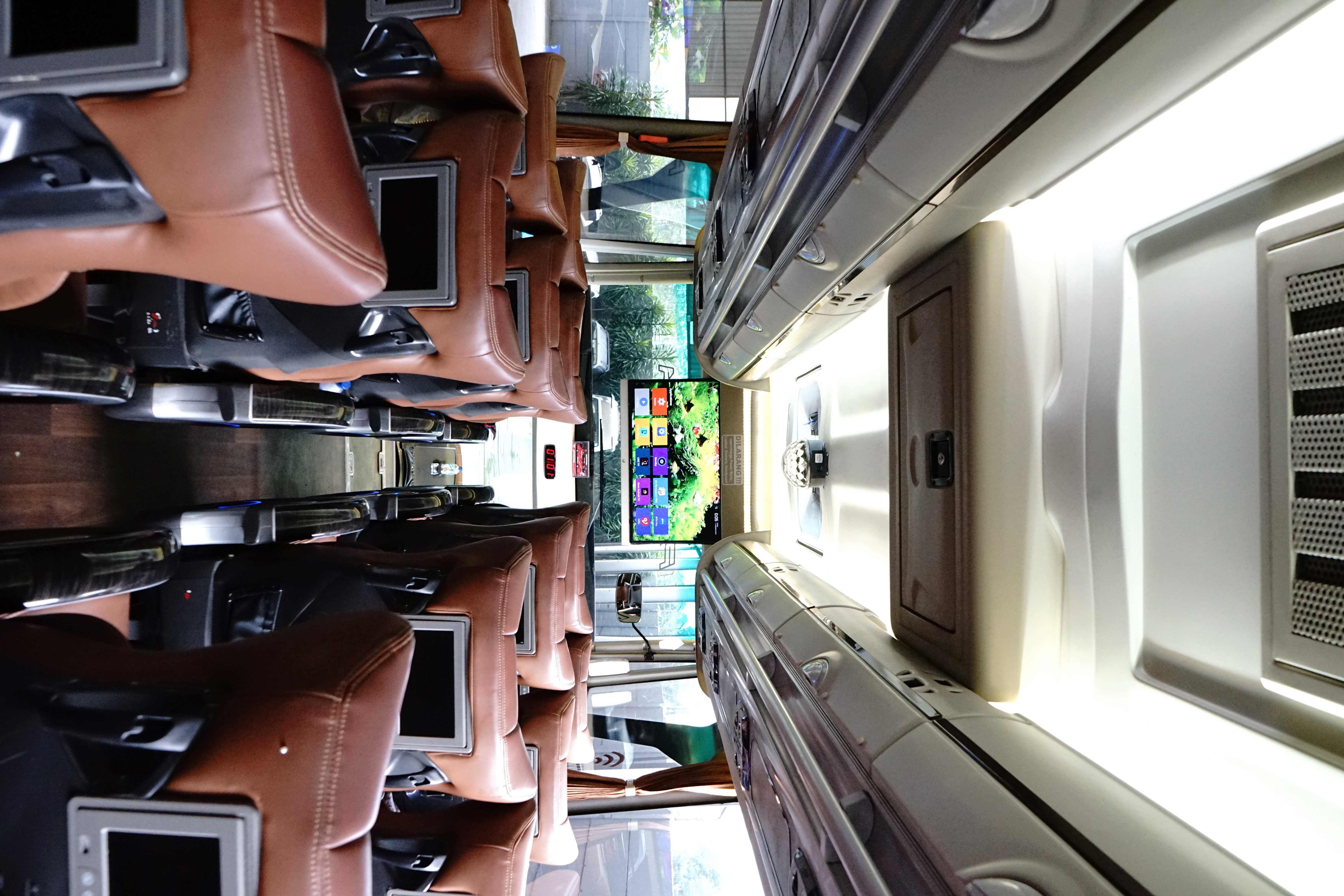 Premium Bus Juragan 99 Trans dilengkapi dengan kursi nyaman beserta pijakan kaki, TV Screen, dan layanan kelas Premium lainnya untuk perjalanan yang menyenangkan. Armada kami selalu menerima perawatan rutin untuk menjaga kualitas dan kenyamanan saat digunakan.